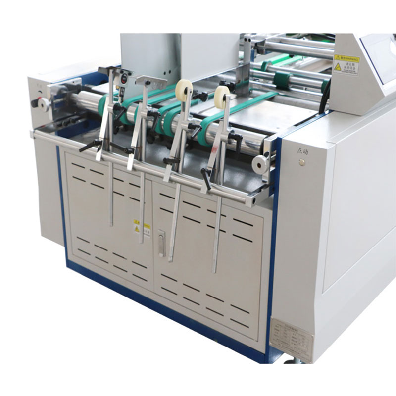Paper is vacuum absorbed by perforated belt in the whole process of gluing and pasting.It runs steadily at high speed and has high precision.
